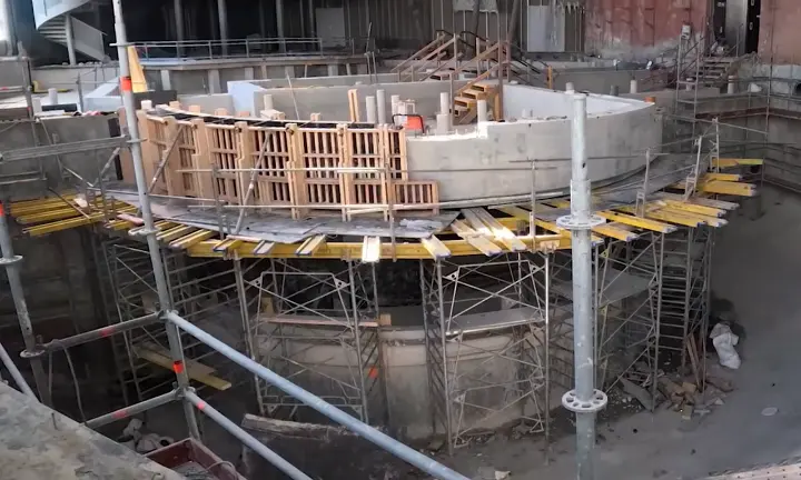 Nos menuisiers ont conçu et fabriqué des coffrages sur mesure, capables de s’adapter aux formes courbes et contraintes spécifiques du chantier.